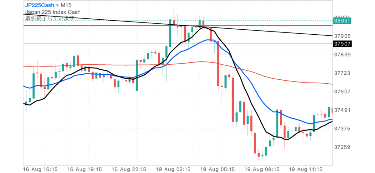 - 15分足でダブルトップ → 短期的な調整の可能性